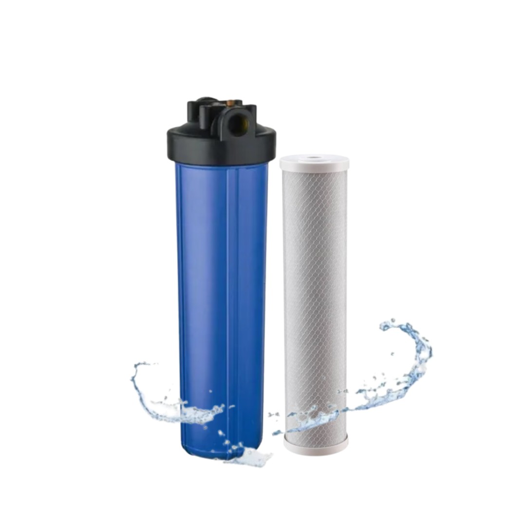Filtro Big Blue 20" Carvão Ativado, Remove Cloro - rosca 1 1/2"